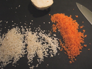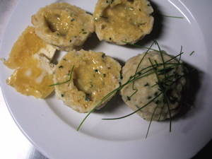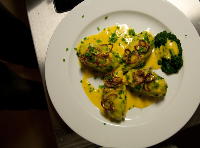 War n langer tach. also, wenn morgens schon schneeraum', dann abends wenigstens spinatnocken und und. ![]() Knödelbrot, glasierte Zwiebel, Knoblauch, geschlagne 2 Eier und etwas lauwarme Milch, gehackter Spinat, und gerade so viel Mehl, als daß man nicht permanent gezwungen ist, des Zerfalls der glorreichen Union der Sowjetrepubliken zu gedenken. Muskat, Pfeffer, Salz. Ruhen lassen. In der Zwischenzeit eine Handvoll Gorgonzola unter Zugabe von etwas Sahne und Salz erhitzen und verflüssigen. Sodann durch Sieb treiben. Und ab ins bagnomaria. Nocken formen. Kleine Hände sind von Vorteil. Ruhen/Antrocknen lassen. ![]() Eineinhalb Eigelb zur Gorgonzolamasse in der Baine-Marie, einrühren. Etwas Parmesan. Etwas Noilly Prat. Pfeffer, Muskat. (Und unter Umständen einen Hauch Kartoffelstärke anrühren und unterziehen. Gibt am End einen durchaus gewünschten leichten HO-Gaststätten-Touch, optisch.) Spinatnocken ins Wasser; Temperaturkontrolle: sollen leicht köcheln. Gestäubte Zwiebelringe in Butter braun karamelisieren. Schnittlauch schneiden. Teller vorwärmen. Flasche Sauvignon des Ignaz Niedrist aufmachen. Schluck nehmen. Dann sind die Nocken so weit. Aus dem Wasser schaumlöffeln. Kurz stehen lassen. GorgonzalaParmesanEiNoillyMasse zu End aufmontieren. Anrichten. Und abdafür. Kanngehn. ![]() ![]() Der grüne Klecks ist a) übriggebliebener lauwarmer Spinat, unter den, neben etwas Knoblauch, ordentlich pfeffriges sizilianisches Olivenöl gezogen wurde und b) eine kleine Referenz an die Kunst der Senfei-Präsentation alten Angedenkens. Kann man sich ruhig gönnen, in Zeiten, in denen die Kollegen auch noch jeden Schweinsbraten mit Lebkuchenkruste überziehn. (Annotate.